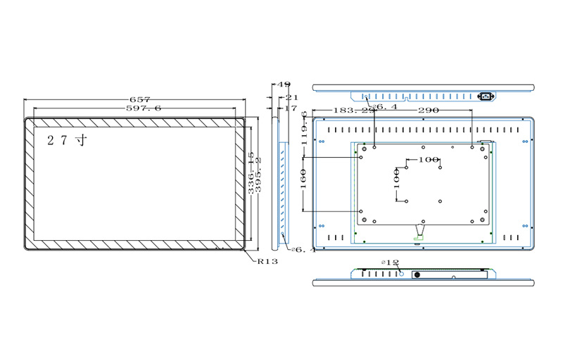 表面3MM鋼化玻璃,邊框鋁合金型材,后殼1.5MM鈑金。